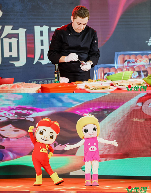 此外,在德斯克德式雞肉熱狗腸新品發(fā)布環(huán)節(jié),金鑼還邀請到了外籍大廚Fabio Falanga,以新品為食材,現(xiàn)場制作了精美的食物給現(xiàn)場經(jīng)銷商品嘗,經(jīng)銷商紛紛豎起大拇指點(diǎn)贊。哈啰伙伴代言人、人氣動漫豬豬俠也來到了新品發(fā)布會現(xiàn)場,用歡快的舞蹈表演助陣哈啰伙伴新品發(fā)布。