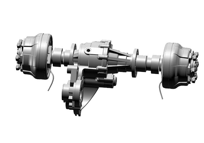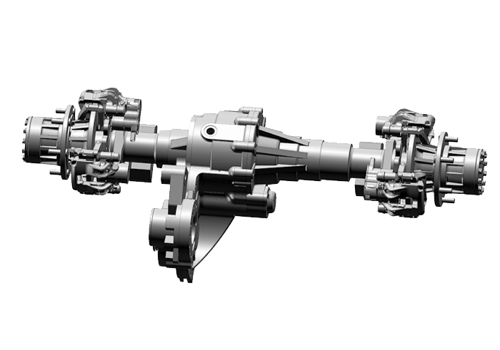 主減速機(jī)構(gòu)采用三級減速器,減速比達(dá)23.9,驅(qū)動橋輸出扭矩13000N.m;